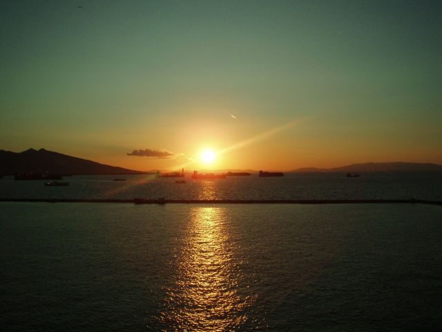After escaping from there Lina and I wandered along the waterfront with our icecreams (pistachio Magnums – yum!) and came back to meet the gals for a drink watching the sunset and the ships on the Aegean. Then we had a room party with chips and some drinks from the corner shop!