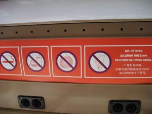Fabulous signs on public transport – lots of signs telling people to smile at each other and be polite, and also the important one – “No Durian!”