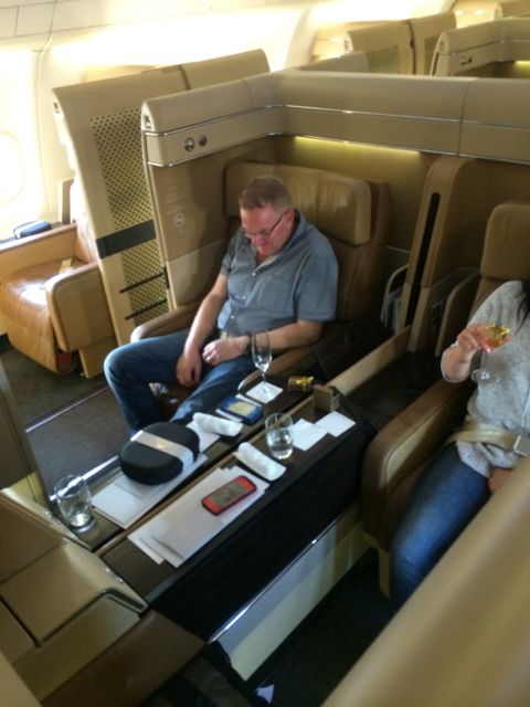 After about half an hour of the staff wrestling with the computer (at one point there were four of them), I had the boarding pass for 1A in my hot little hand. Ahhh… “suite”!