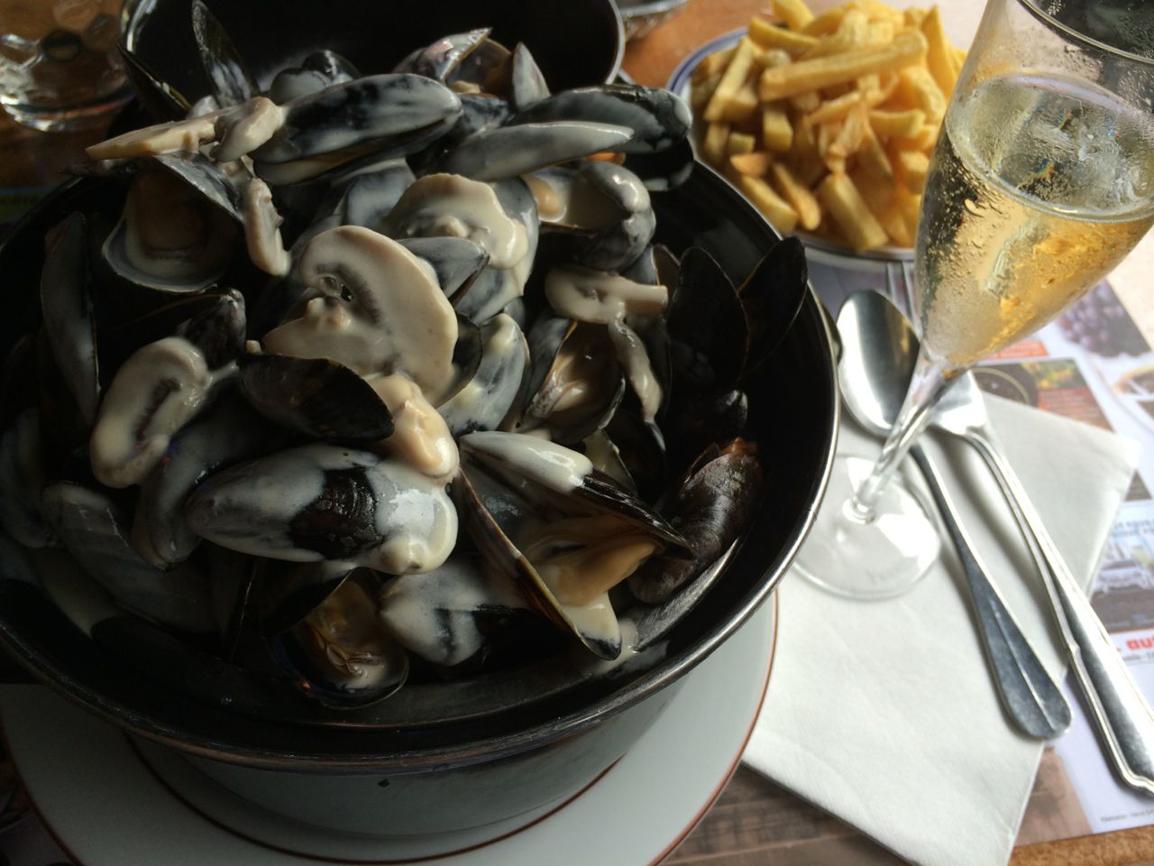 I had to check out, so I left my luggage at reception while I went into town to kill time before my train in the evening. I started with a late lunch of mussels in a lovely creamy champagne and mushroom sauce (see? there’s a connection with champers and champignons!) and wandered around town a bit. I stopped into a couple of bottle shops and picked up some half bottles, not realising when I bought them singly, that together they weighed quite a lot!