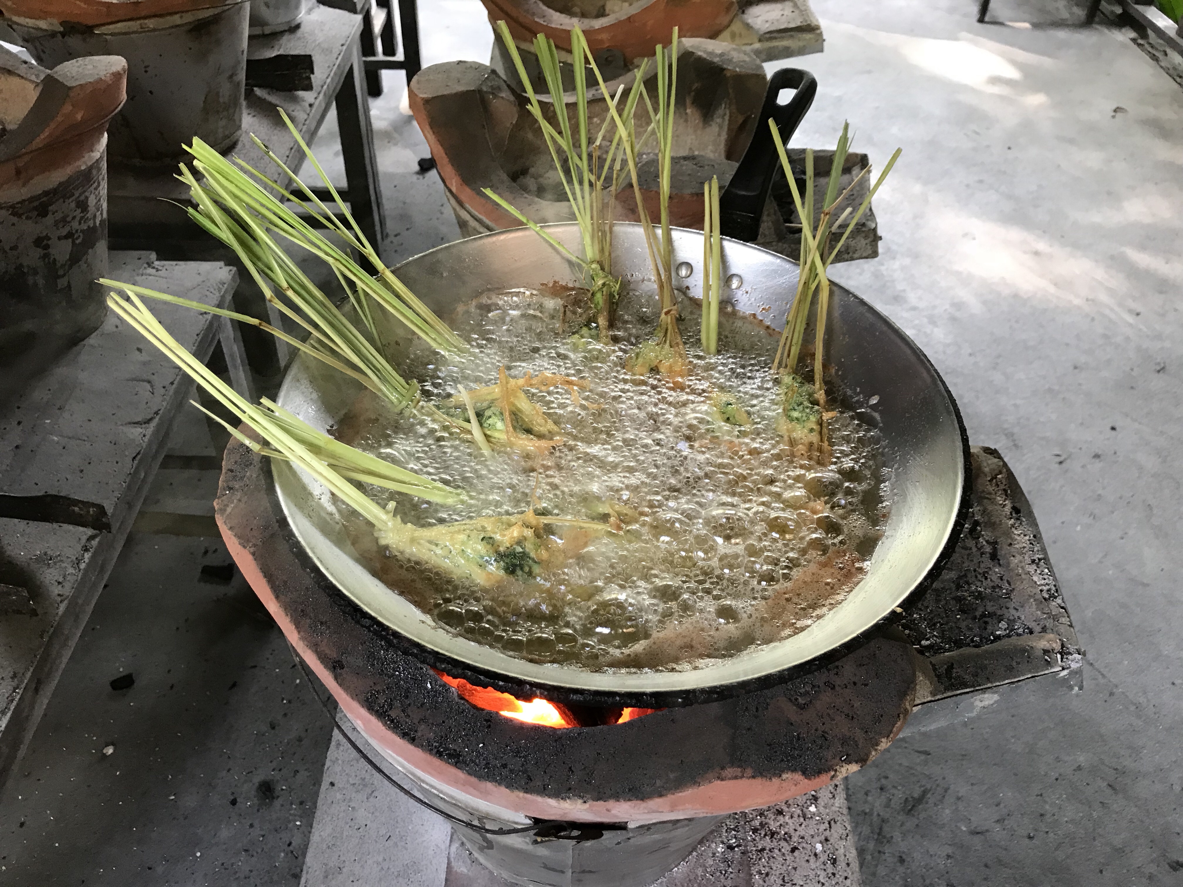 Frying the stuffed lemongrass