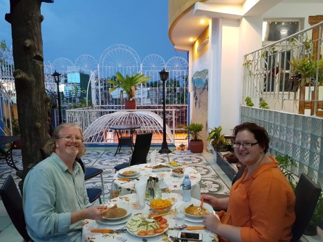 As the sky was looking increasingly threatening and lightning had started to flicker in the distance, we headed back to the hostel, reaching it just as the rain started pouring. The rest of the evening was spent on the upstairs patio, watching nature’s skyshow and chowing down on the hostel cook’s delicious prawns, veggie soup and even… a small bowl of icecream to finish!
