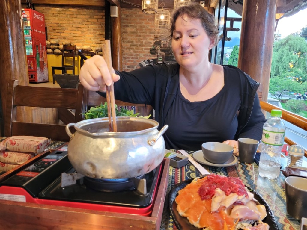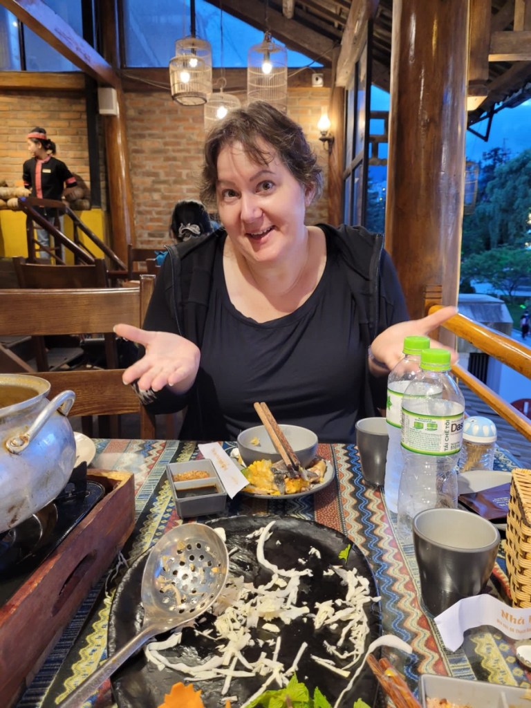 Sapa is 1500m above sea level so it’s permanently in the clouds, and cooler than the surrounding lowlands. I’d chosen the hotel because it apparently had great views over the valley and mirroring mountains, but there was so much low cloud the whole time we were there we barely glimpsed past the next road until our final day!