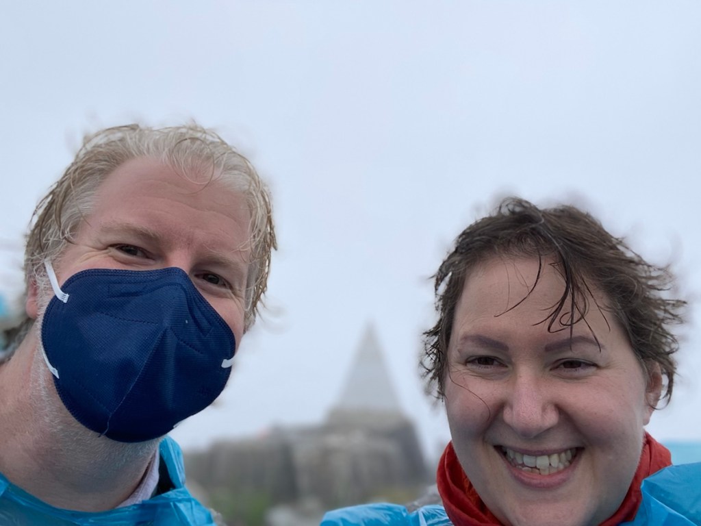 Leaving the cable car to climb up to the final funicular, we were blasted with icy winds, and we, like all the other people, dived into the souvenir shop to buy up big on disposable plastic raincoats. This was invaluable to cut the wind chill at the top!