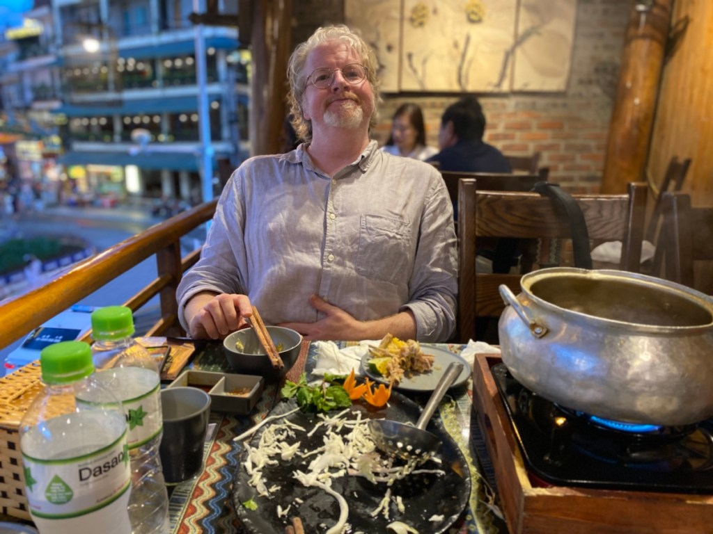 Our last evening was spent finally trying the hotpot we’ve seen advertised everywhere. We had a great spot on a balcony overlooking the main street, watching the much-increased Friday night traffic. We threw pieces of beef, chicken, sturgeon and salmon into the pot along with mushrooms, leafy greens, tofu skin and corn, before pulling them out and gobbling them up. So good! What they say about the local salmon is true – it’s got great colour, tastes delicate and would make an awesome sashimi.