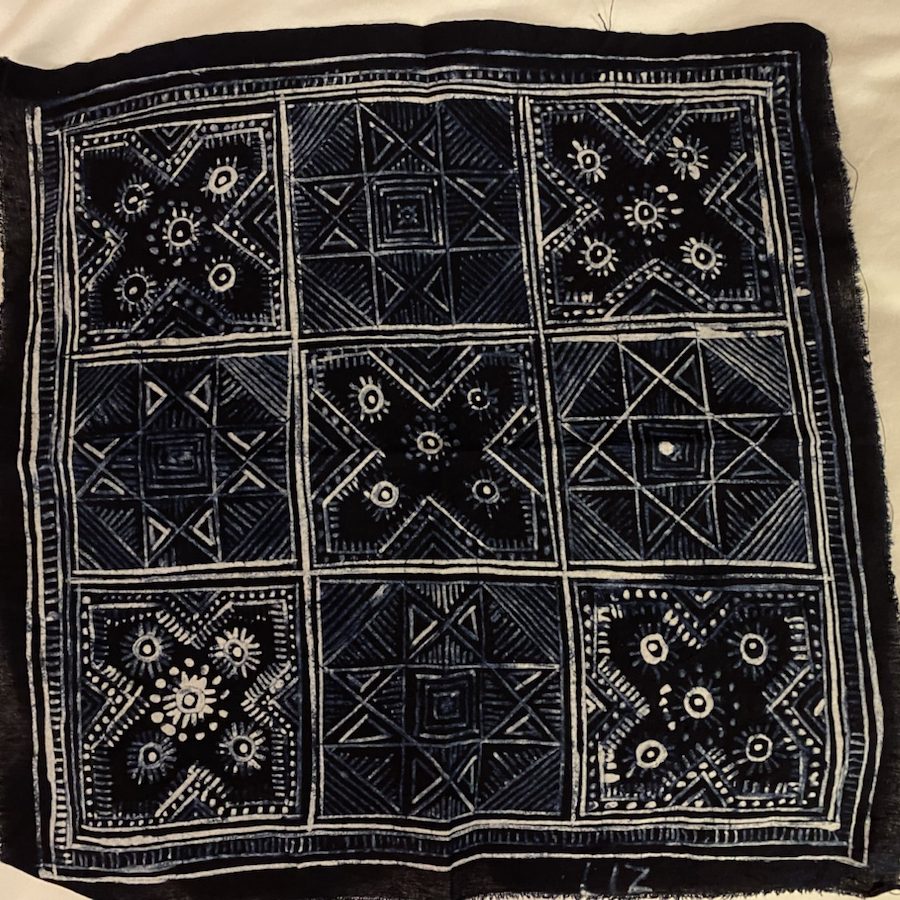 With Meme’s help we ended up making designs that were much more intricate than we had expected. R’s was more curvy, plant-themed shapes, while mine was more angular and abstract. We didn’t have time to dye it with indigo, so Meme took care of that process and her daughter from the shop organised to have our finished cloth dropped off at the hotel.