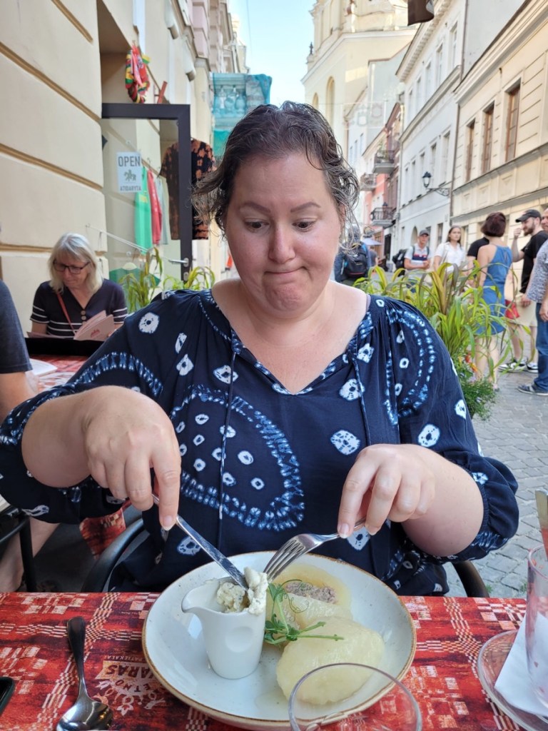 After a false start, we hopped on a bus to head out to see Trakai Castle, famous for being a castle on an island. A very pleasant place it is too, and after a boat trip around the area and stopping for lunch (I tried the delicious creamy cold beetroot soup) we needed to head back to the bus station. Little did we know that there are very few rideshare cars out there, and we weren’t able to request one in time! We’d been standing at the bus stop outside the visitor centre while we worked this out, and one of the lovely people working there must have seen our confusion because she opened the window and took pity on us, telling us we were waiting at the wrong bus stop and the one we wanted to go back to the bus station was just up the street. Thankfully, the next bus was imminent. and although my heart jumped when the bus took a quick detour past the shops, we made it to the bus station with a couple of minutes to spare to catch the Vilnius bus.