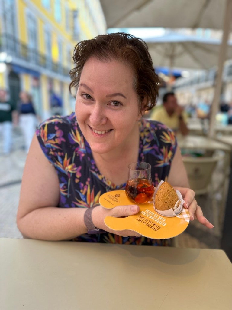 We checked in to our apartment (Dream Chiado, a collection of small apartments in a converted commercial/residential building) and went for a walk. Given we were in the heart of the city it didn’t take long to find the main square and waterfront. We wandered around a bit getting the lay of the land, and sat down for some tapas and a happy hour cocktail (port n tonic with octopus salad) and then experienced the ‘true’ Portugal experience with a (gf) cod potato cake and glass of port at Casa Portuguesa Pastel de Bacalhau. They even give you the port in a souvenir glass that you wander out into the street with!