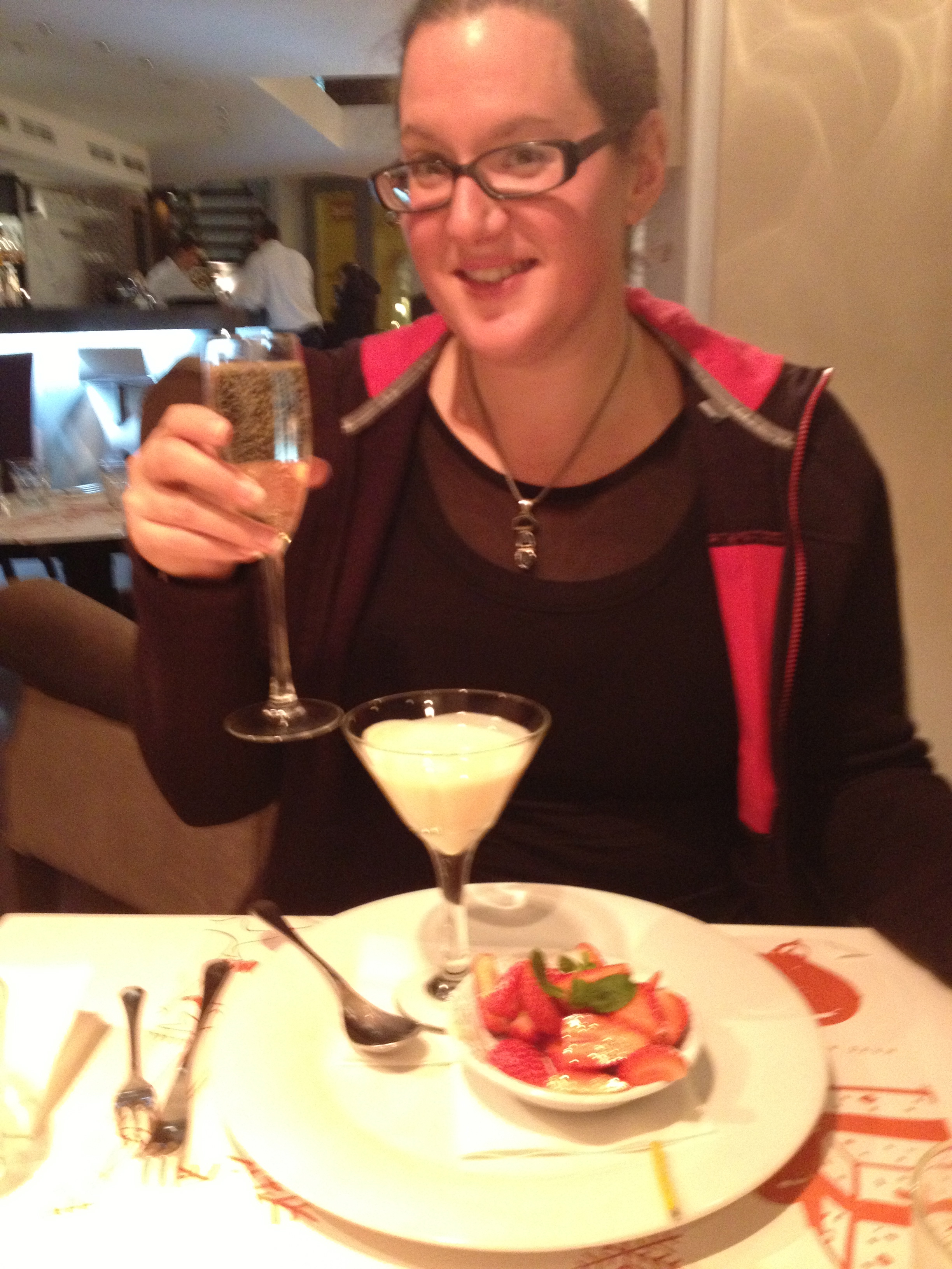 We were eating at my cousin R’s place – he shares a flat in Friedrichshain. Almost the whole family was there – my aunt and three of my cousins. They were all ecstatic to see the snow, too, apart from R who has been living here for a while now, and is a bit sick of the cold!