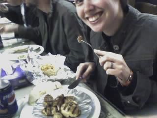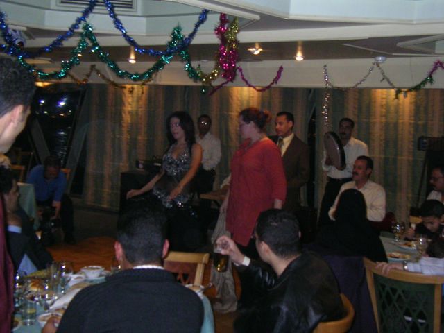 Dinner was a “5-Star Extravaganza”! We had dinner on another cruise boat on the Nile: one that just does a loop for a couple of hours from the Cairo docks for lunch/dinner cruises. The buffet wasn’t anything special compared to the other meals we had, but the desserts were much more expansive! The entertainment was great though – the usual show of a Sufi dancer, solo bellydancer, a small group of male dancers, and the bellydancer joined them before inviting the audience to come up and dance. Because it was my b’day, I was invited up to have a shimmy or two, which was fun.