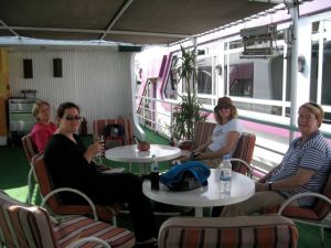 The riverboat was comfortable, but the rooms were pretty cramped, especially the bathrooms! While cruising, we shopped for silver at the on-boat jewellery store, sipped drinks and played cards to pass the time.