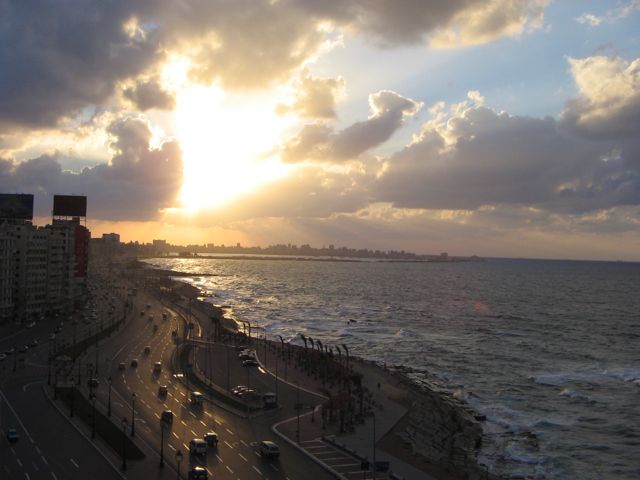 In Alexandria we stayed in a big hotel right on the beach! The view from our balcony was the Mediterranean… and the multi-lane highway right in front of it!