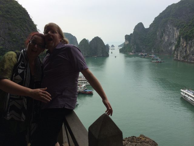 The trip back to Hanoi was enlivened by a stop at a Humanities Centre, which is where a number of people with disabilities are employed to make handicrafts. They do embroidery pictures, copying paintings and lacquerware. This place was basically a huge shop, with “silk” clothes (that would be rayon or polyester for the most part, but there was some silk) stone carvings, jewellery, as well as the lacquerware, paintings and embroidery made in the centre. We bought a small lacquer rice server and a couple of pressies for people back home ๐