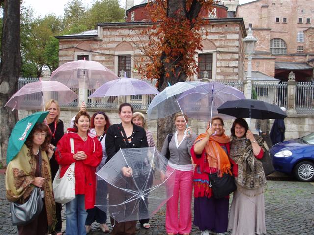 We did sightseeing today – Aya Sofia and the Blue Mosque, the the Hippodrome. Gorgeous, but it was raining pretty hard at times and we all got saturated.