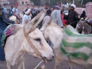 We got up at some ungodly hour this morning to hitch a ride in a ferry across the Nile to the West Bank to go to the Valley of the Kings. We rode donkeys from there for about an hour – wow they were competitive! If they saw a gap in the donkeys ahead they’d race to get there! At one point my donkey decided to make a run for it, slipping past someone else and leaving confusion in our wake. Apparently I was clutching it so hard it looked like my legs were wrapped completely around the donkey’s girth in an effort to stay on! No stirrups, we just had to rely on our thigh muscles to hold us on.