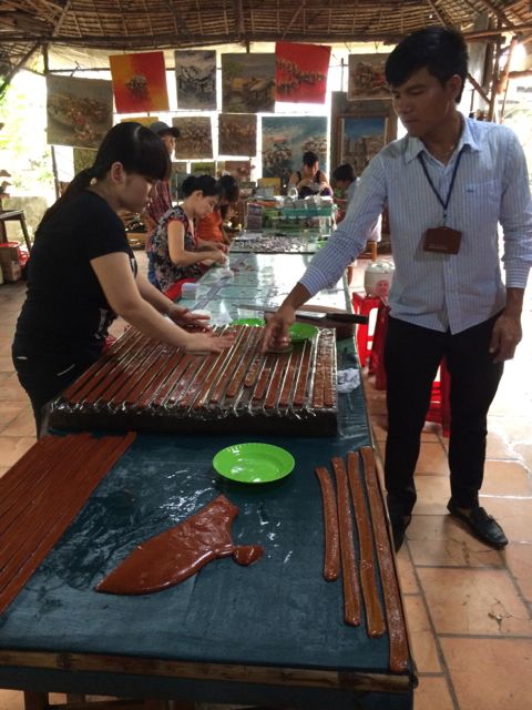 Our next visit was to see the fish sauce factory – ohhhhh stinky. They ferment the fish in great vats in order to get the signature taste of Vietnam… I’m happy to buy it in a nice sealed bottle, after smelling that!